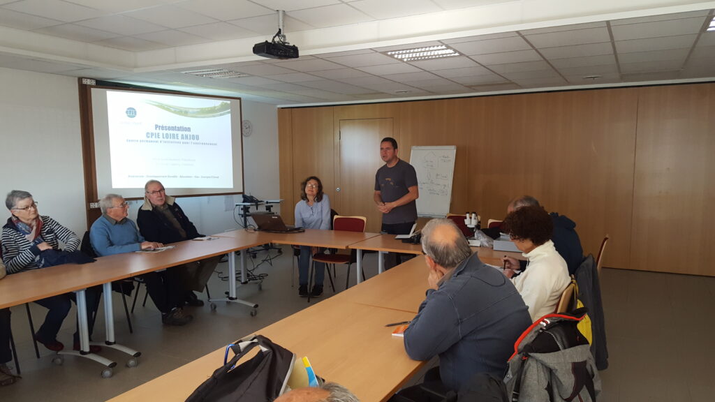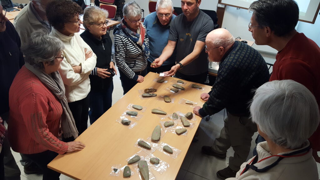 En début de journée, une présentation des actions du CPIE Loire Anjou par Sandrine Le Gall (responsable du patrimoine au CPIE) nous a permis de découvrir le travail participatif permettant de répertorier toutes les haches polies du Néolithique Moyen (5500-2200 avant notre ère) découvertes dans la région par les particuliers afin de pouvoir en faire une étude rigoureuse.