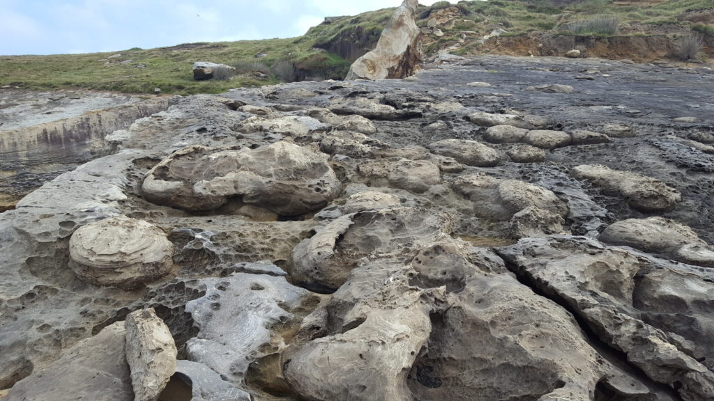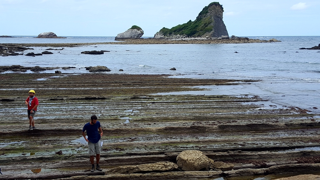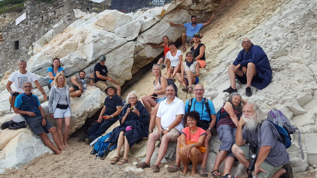 Autres lieux pour les derniers jours, avec la côte basque. Nous avons découvert les falaises de Bidart avec leurs plis, leur érosion … et la limite K-T. La pause baignade s’est poursuivie par un pique-nique au pied d’une structure pouvant être interprétée comme un diapir de gypse. Puis direction l’Espagne, pour observer les « paramoudras », boules dans des grés éocènes, véritable curiosité géologique. Le séjour s’est terminé par l’observation des flyschs plissées à St Jean de Luz puis dans les falaises de la Baie de Loya – petit paradis de la géologie basque – associées au rifting pyrénéen ainsi que les différents épisodes de déformation liés à l’inversion tectonique du bassin et à la formation de la chaîne.
