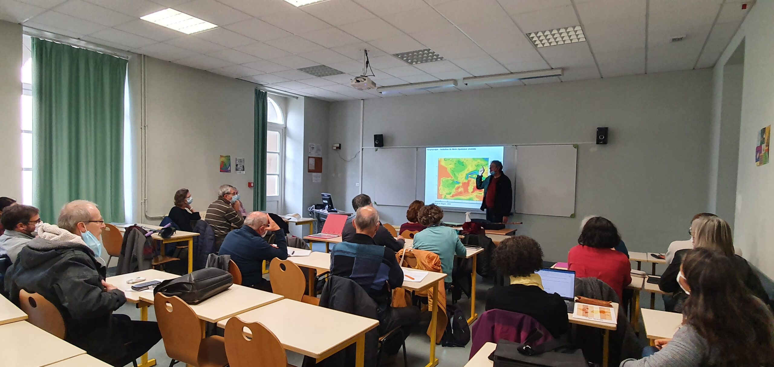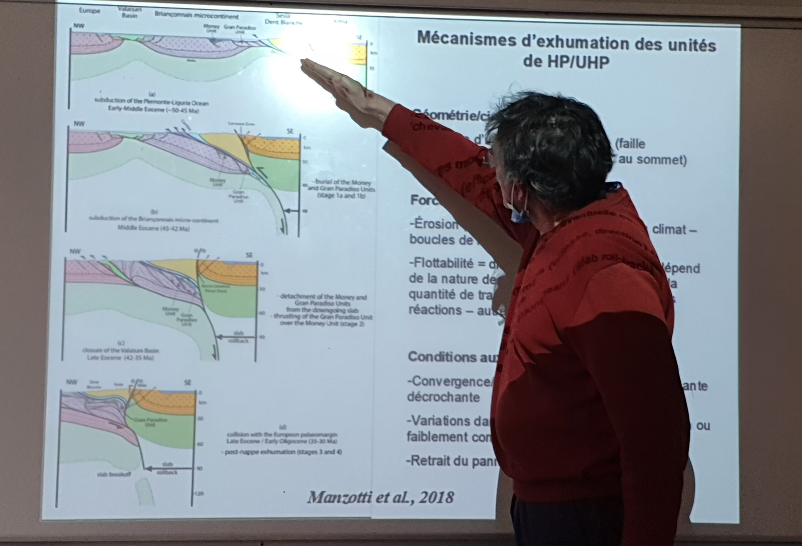 Le 4 décembre 2021, au lycée David D’Angers à Angers, retour sur le stage de terrain en Val d’Aoste de cet été. Michel Ballèvre nous a fait l’immense plaisir de venir sur nos terres pour reconstituer les étapes de l’histoire de la chaine alpine. Où comment les observations de terrain dans le Val d’Aoste cet été peuvent se traduire sous forme de schémas structuraux.