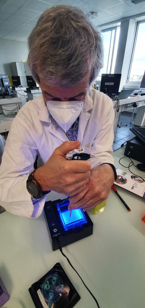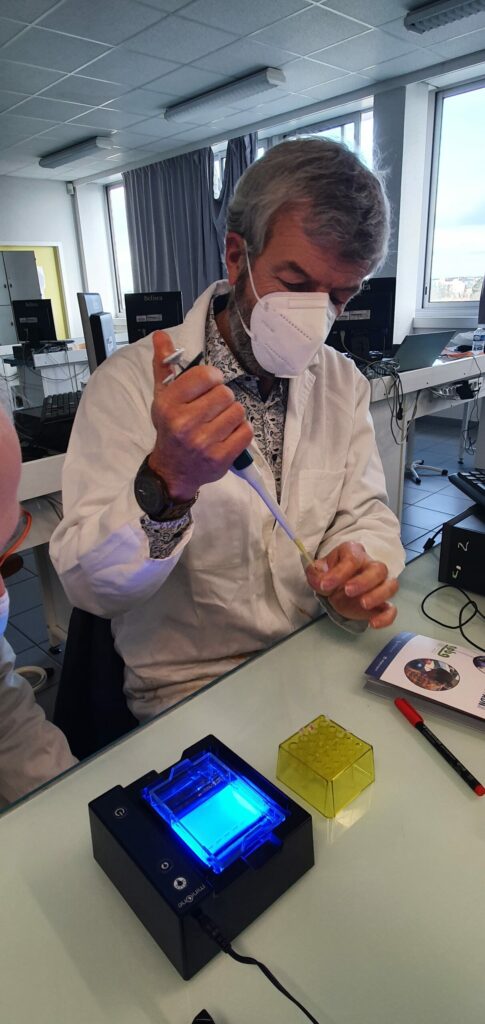 C’est dans une ambiance chaleureuse, décontractée et studieuse que Stéphane Theulier de l’école de l’ADN de Nîmes est venu nous aider dans la compréhension du matériel et des protocoles. Les matériels, thermocycleur, système d’électrophorèse rapides n’ont plus de secrets pour nous !