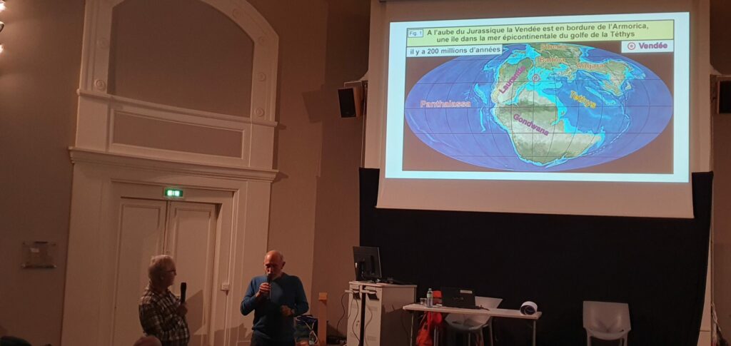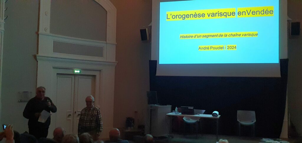 L’après-midi, année des géosciences oblige, la SSNOF (Société scientifique du nord-ouest de la France) organisait dans l’amphithéâtre du muséum de Nantes une conférence de André Pouclet sur la chaîne varisque en Vendée. Toujours très intéressant de voir confronter les interprétations quand dans l’assemblée plusieurs géologues sont présents. Un moment très intéressant pour voir comment la science avance.