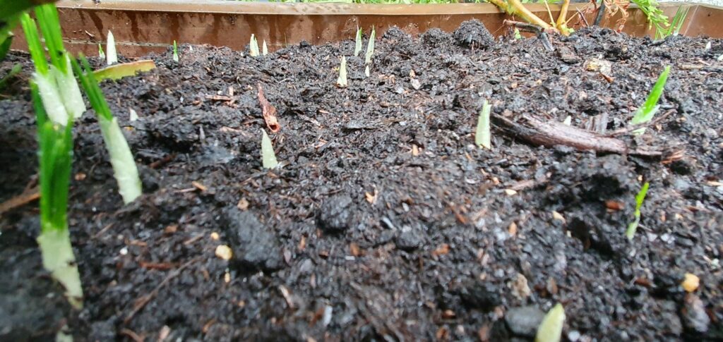 Après une présentation du cycle de développement de cette vivace et de toutes les vertus médicinales qu’elle offre, nous sommes allés sur la parcelle de 900 m2 de l’exploitation safranière à St Sauveur de Landemont où 17 000 bulbes nous attendaient… sans révéler pour autant leur précieux trésor ! Et oui, pas assez de froid ! La fleur éclot la nuit à la condition qu’il fasse environ 5°C. Il y a donc du retard cette année dans la floraison. Dommage pour nous, nous n’avons vu que les feuilles ! Consolation autour d’une madeleine et d’une infusion safranées.